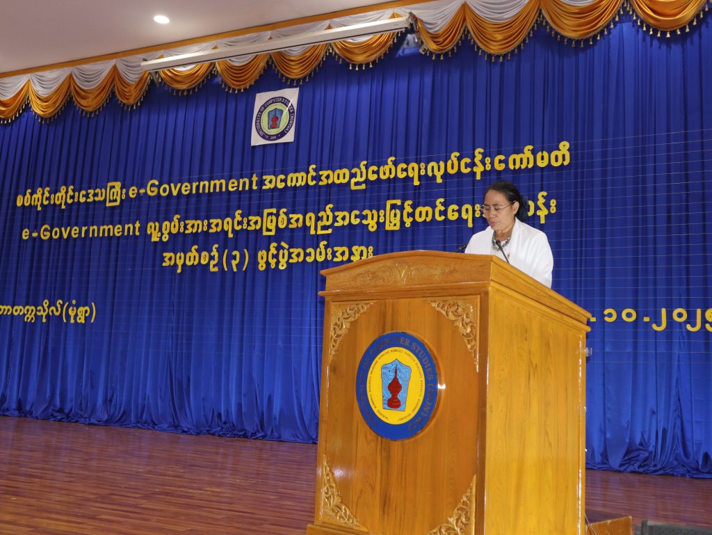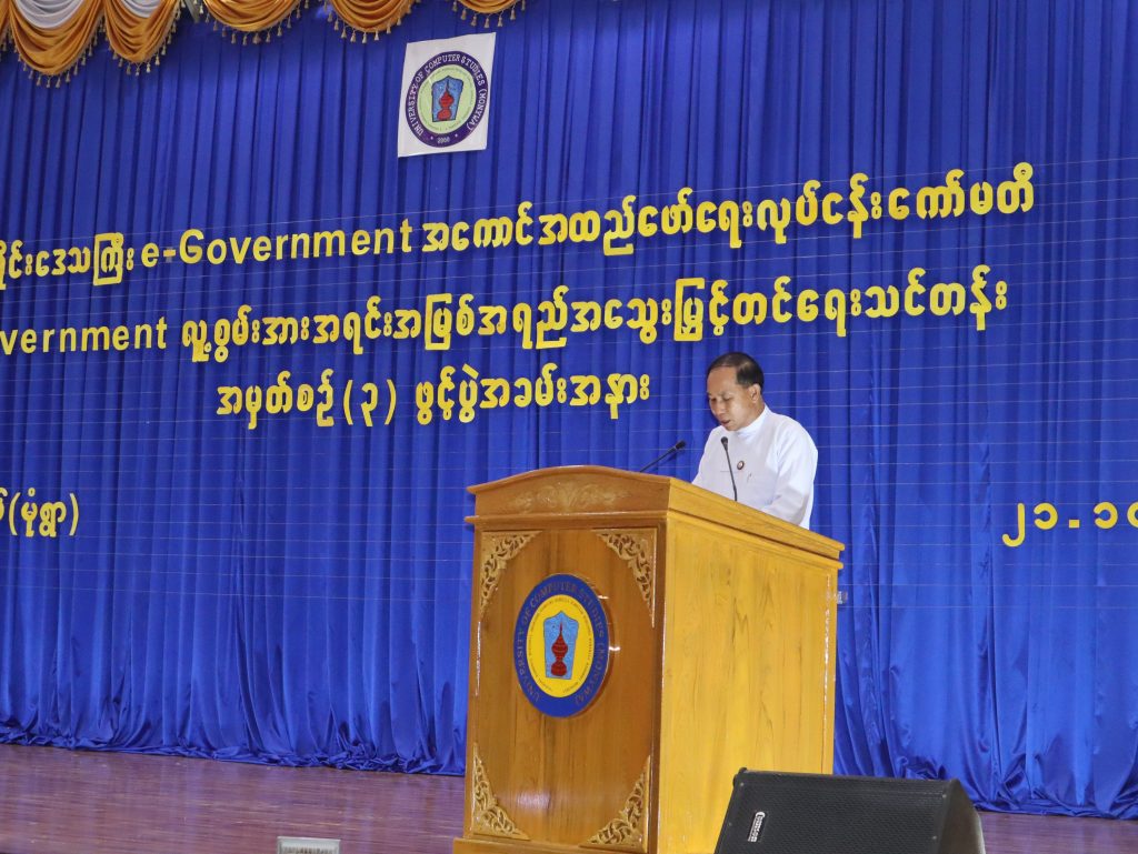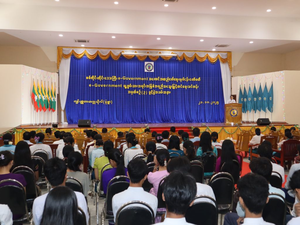 စစ်ကိုင်းတိုင်းဒေသကြီးအစိုးရအဖွဲ့ e-Government အကောင်အထည်ဖော်ရေး ဦးစီးကော်မတီ၏ ပံ့ပိုးကူညီမှုဖြင့် တိုင်းဒေသကြီး e-Government စနစ်အကောင်အထည်ဖော်ရေးလုပ်ငန်းကော်မတီမှ ကြီးမှူးဖွင့်လှစ်သော e-Government လူ့စွမ်းအား အရင်းအမြစ်ဖွံ့ဖြိုးရေး သင်တန်း အမှတ်စဉ်(၃) ဖွင့်ပွဲအခမ်းအနားကို ကွန်ပျူတာတက္ကသိုလ်(မုံရွာ)၊ ဘွဲ့နှင်းသဘင်ခန်းမ၌ ၂၁.၁၀.၂၀၂၅ ရက်နေ့တွင် ကျင်းပခဲ့ပါသည်။ အဆိုပါအခမ်းအနားသို့ တိုင်းဒေသကြီး ဝန်ကြီးချုပ် ဦးမြတ်ကျော်၊ အစိုးရအဖွဲ့ဝင်များ၊ ပါမောက္ခချုပ်၊ ဒုတိယပါမောက္ခချုပ်၊ ဆရာ/ဆရာမများ နှင့် ဌာနဆိုင်ရာအသီးသီးမှ သင်တန်းသား/သင်တန်းသူများ တက်ရောက်ခဲ့ကြပါသည်။