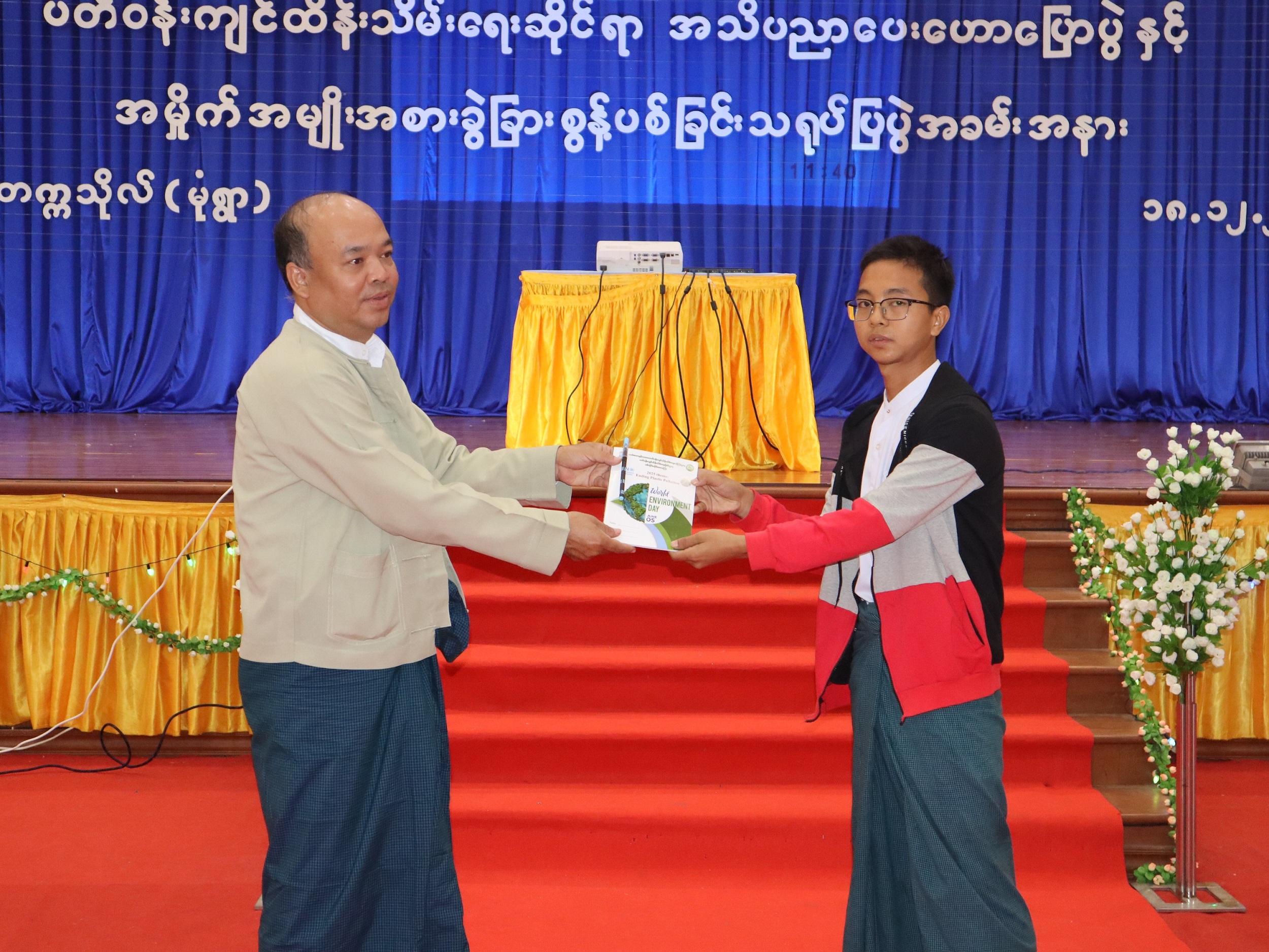 ပတ်ဝန်းကျင်ထိန်းသိမ်းရေးဦးစီးဌာန၊ လက်ထောက်ညွှန်ကြားရေးမှူးမှလည်း အမှိုက်အမျိုးအစားခွဲခြားစွန့်ပစ်ခြင်းနှင့် ပတ်သတ်ပြီး သရုပ်ပြ ပြောကြားပေးခဲ့ပါသည်။ ထို့နောက် ကွန်ပျူတာတက္ကသိုလ်(မုံရွာ) ကျောင်းသား/သူ များမှ ပတ်ဝန်းကျင်ထိန်းသိမ်းရေးဆိုင်ရာ မေးခွန်းများကို ပါဝင်ဆွေးနွေးဖြေကြားခဲ့ပါသည်။