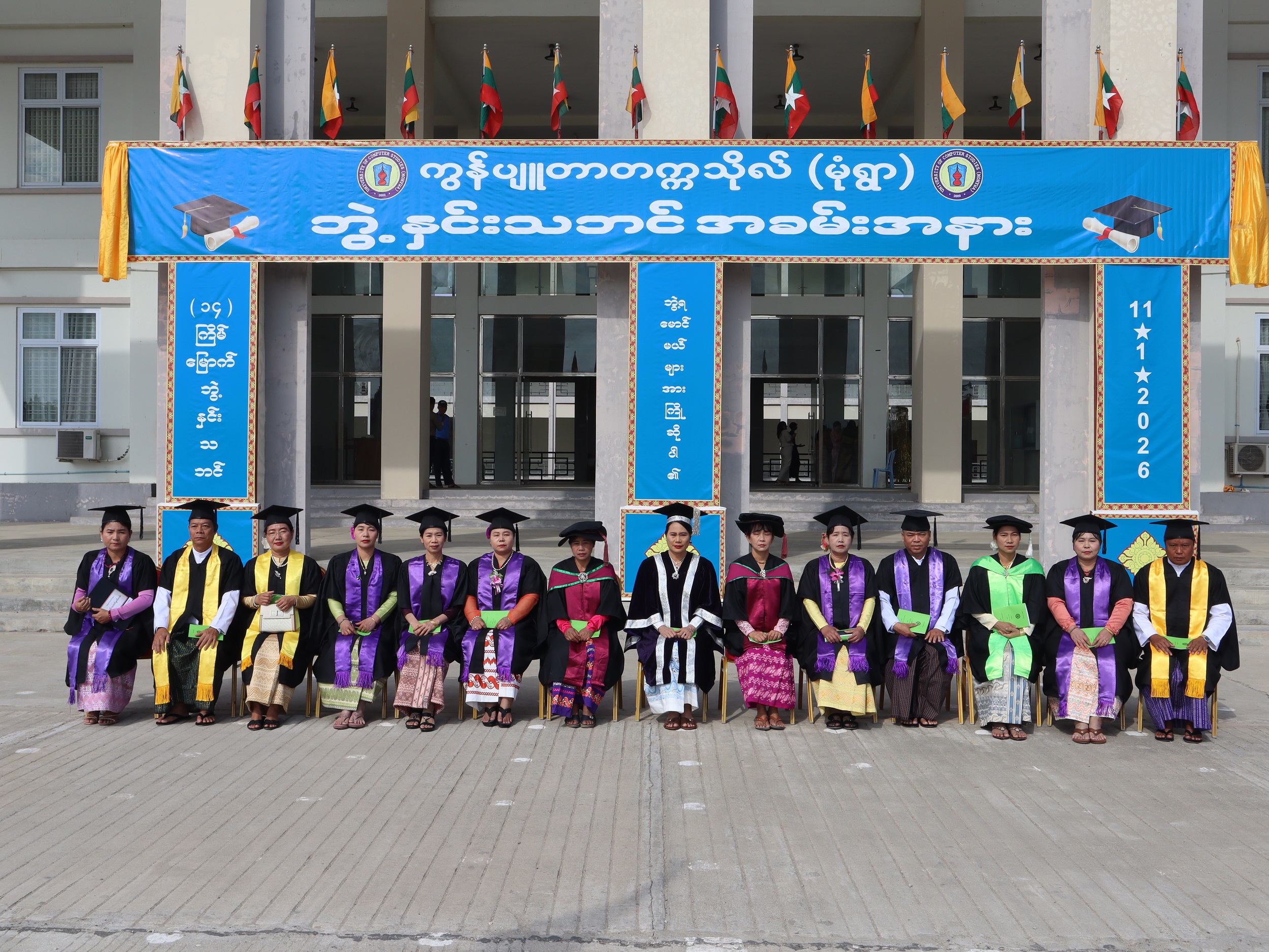 ကွန်ပျူတာတက္ကသိုလ်(မုံရွာ) ၏ (၁၄) ကြိမ်မြောက် ဘွဲ့နှင်းသဘင်အခမ်းအနားကို ၂၀၂၆ ခုနှစ်၊ ဇန်နဝါရီလ၊ ၁၁ ရက်၊ တနင်္ဂနွေနေ့ တွင် ကွန်ပျူတာတက္ကသိုလ်(မုံရွာ)၊ ဘွဲ့နှင်းသဘင်ခန်းမ၌ ကျင်းပပြုလုပ်ခဲ့ပါသည်။ အဆိုပါ အခမ်းအနားတွင် ပါမောက္ခချုပ်မှ ကွန်ပျူတာသိပ္ပံဘွဲ့ နှင့် ကွန်ပျူတာနည်းပညာဘွဲ့ အစရှိသည့် ဘွဲ့အသီးသီးကို ပေးအပ်ချီးမြှင့်ခဲ့ပါသည်။